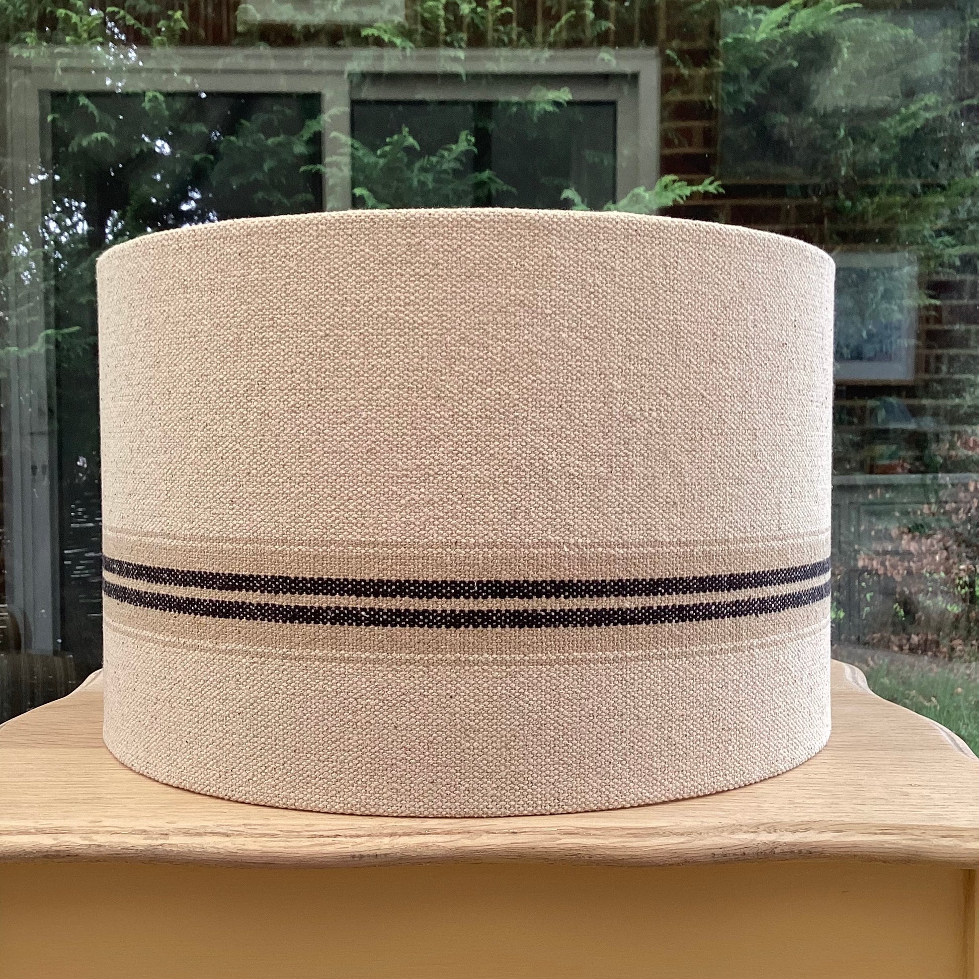 Grain Sack Linen Lampshade Black and Tan Stripes Natural Oatmeal Cream