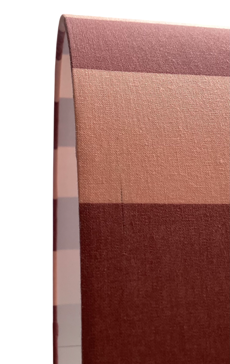 This handmade lampshade features elegant vertical stripes in muted rose pink and deep berry tones — warm, grown-up, and quietly confident. It’s the kind of shade that doesn’t scream for attention but still wins the room.