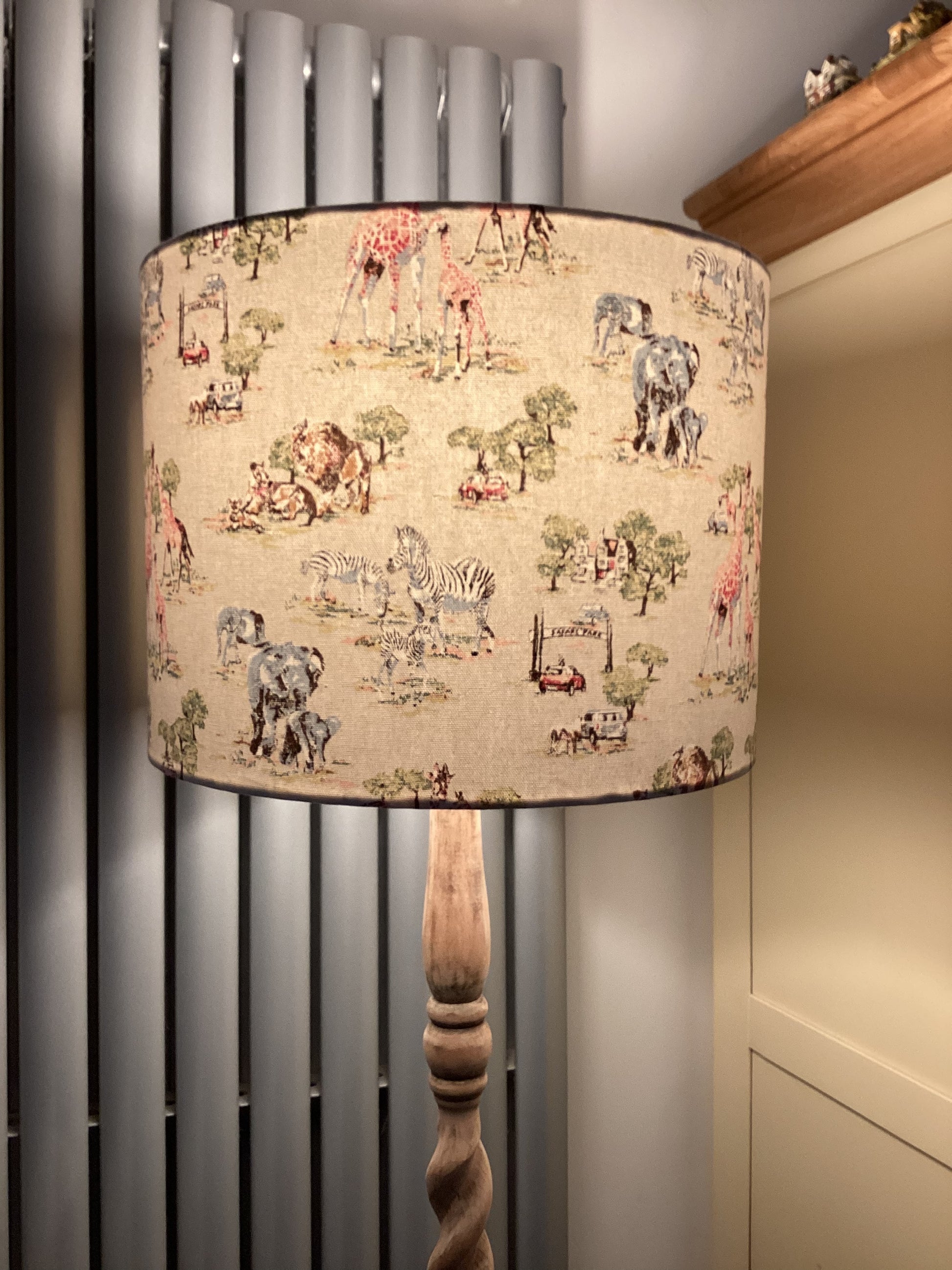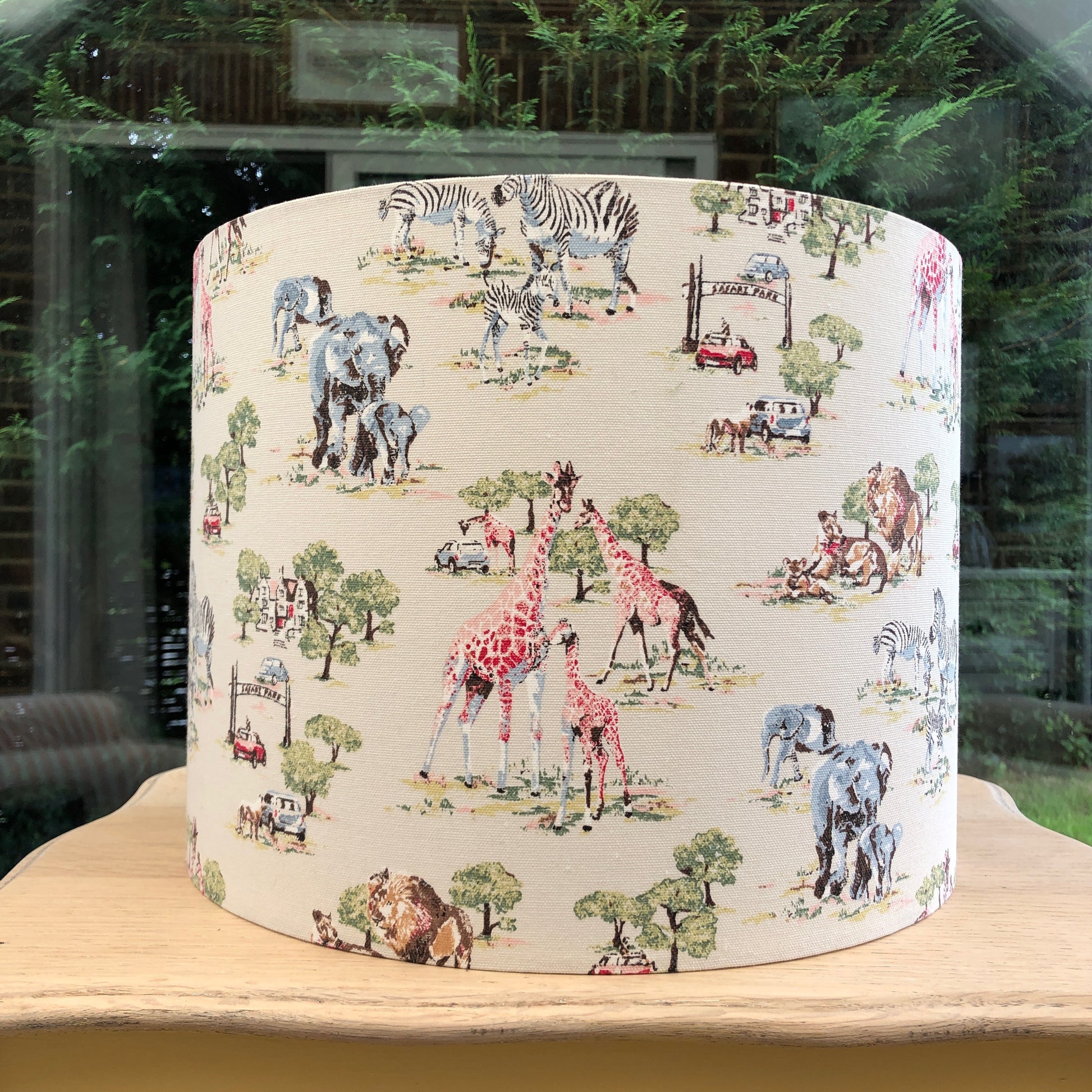Introducing our Safari animals lampshade, designed to bring the rustic charm of linen to your living space. This adorable lampshade features soft pink tones and neutrals, creating a soothing and inviting atmosphere for your baby's nursery.
